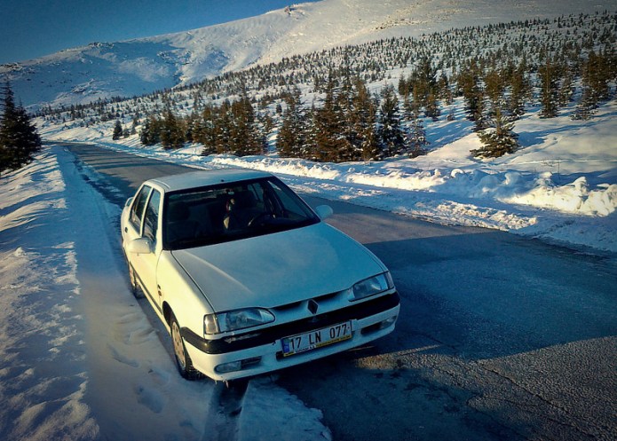 İyi bir otomobil, sürüş keyfini garantilemez. İyi yol ise otomobilinize bakmaz ve size sürüş zevki sunar. Ellerimde içi geçmiş bir R19’un direksiyonu, direksiyonda ise paraşütle atlayabileceğiniz kadar uzun bir boşluk var. İkinci vitese geçmek biraz kol kası gerektiriyor ve debriyaj o kadar yukarıda kavrıyor ki, ayak ucunuzla debriyaja yapacağınız minicik bir itekleme hareketi, vites değiştirmek için yeterli olabiliyor. 1.4 litrelik motorun, aracı 0’dan 100’e kaç saniyede hızlandırdığını merak ettim ama 25 saniyeden sonra saymayı bıraktım.